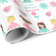 Este belo papel de embrulho de aniversário é apropriado para meninas até os sete ou oito anos. Ele apresenta três imagens de garotas de joaninha vestidas de azul rosa e lacrimogênio. Além das pequenas imagens femininas são insetos coloridos, flores e seu texto personalizado. Personalize-o só para ela! Gráficos por Prettygrafik Design, © Prettygrafik.com