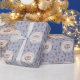 Papel de embalagem personalizado de outono/outono para o bebê. Ideal para chá de fraldas, aniversário, primeiro aniversario, novo bebê, nova mãe e dia de Ação de Graças de 1rua. Possui uma torta de cereja desenhada à mão e um gingham macio e bronzeado contra um padrão de corações adoráveis em um fundo azul francês. Personalize com o nome do bebê. Basta clicar em "Personalizar este modelo" na página do produto e inserir o nome do bebê.