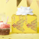 Série motivacional: Linda embrulho de presente com uma Fênix colorida por chama, asas estendidas, tendo se erguido das cinzas. Está num fundo amarelo e usa uma mensagem personalizada para você mudar, digitando na caixa.