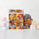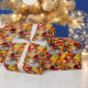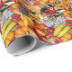 Mercado da Fruta, mistura colorida de maçãs, bananas, laranjas e uvas, papel de embalagem.