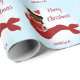Papel de enrolar com um padrão de sereias em roupas de papai noel com pele marrom. O papel de embrulho tem as palavras "Feliz Natal" e um nome personalizável.