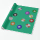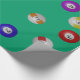 rendição 3D de bolas de bilhar em um campo verde. Puderam ser uma ruptura má, ou apenas um scatter impar. Bola de sugestão com as quinze bolas de bilhar, os 7 sólidos (pouco uns), as 7 listras (as grandes), e uma bola do preto 8.