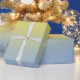 O gradiente mínimo amarelo a azul claro adiciona um sotaque colorido aos presentes.