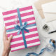 Papel De Presente Mínimo Simples, Rosa Moderno e Branco Strike
