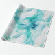 Papel De Presente Mint Aqua Dourada Ink Marble