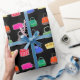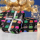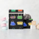 Este papel colorido de embalagem de presente tem um padrão de bolsas em estilos e cores diferentes. O fundo é preto. Excelente para ventiladores de design e moda feminina.