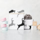 O padrão de renas em uma sofisticada cinza e preto parecerá excelente com uma fita vermelha festiva (ou verde, ou dourada, prata, ou...).