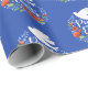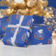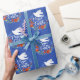 Um bonito presente de Natal com uma pomba em uma coroa floral com as palavras Paz na Terra em uma letra elegante. Este papel de embrulho de Natal é desenhado em azul real, branco e vermelho. Projetado para você pelo Blackberry Boulevard.