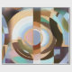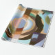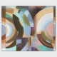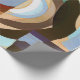 O papel de envolvimento retro do estilo do art deco com uma torção abstrata moderna que caracteriza um na moda pintou o teste padrão gráfico do círculo em marrons mornos ricos e em azuis pulverulentos macios.
