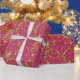Papel de embrulho de presente de feriado mostrado com um Ouro bonito rico espirra impressão num fundo cor-de-rosa magenta. Escolha sua cor de fundo. Personalize este papel ou comprar como está.