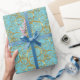 Papel de embrulho de presente de feriado mostrado com um Ouro bonito rico espirra impressão em um Robbins Cor de fundo Azul de Ovo. Escolha sua cor de fundo.