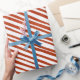 Lindas listras passam papel de embrulho de Natal.