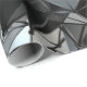 Painéis 3D sobrepostos criam uma vibração interdimensional, em preto e branco.