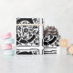 O papel inicial de empacotamento de padrão floral branco e preto do Monograma C pode ser personalizado com uma imagem, nome, texto, logotipo ou foto. Mude o fundo branco para qualquer sombra de azul, verde, amarelo, laranja, rosa, vermelha, marrom e roxa. Excelente para embrulhar presentes de Natal, aniversário, chá de fraldas ou casamento.