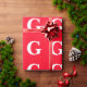 Papel De Presente Monograma de Letra Inicial Vermelho Branco Simples