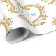 Ouro afeta a arte do monograma cardíaco em branco com papel de embrulho de prenda de iniciais escura escura esmeralda. Design de corações com as iniciais do monograma dos seus casais. Outras cores e itens correspondentes estão disponíveis. © Desenho original em folha e design por Sarah Trett para www.mylittleeden.com no Zazzle.