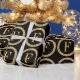 Monograma F dourado sobre fundo preto com círculo dourado.
