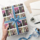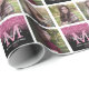Papel de embrulho de natal monograma personalizado com 3 fotos para você substituir por seu próprio nome, o nome do destinatário e inicial, brilho rosa falso, o ditado "natal alegre" que pode ser mudado para qualquer celebração e o ano.