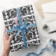 O papel inicial de empacotamento de padrão floral preto e branco monograma I pode ser personalizado com imagem, nome, texto, logotipo ou foto. Mude o fundo branco para qualquer sombra de azul, verde, amarelo, laranja, rosa, vermelha, marrom e roxa. Excelente para embrulhar presentes de Natal, aniversário, chá de fraldas ou casamento.