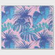 Papel De Presente Monstera Azul Tropical e Folhas de Palma Rosa