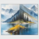 Linda pintura a óleo de montanhas com capa de neve e um lago