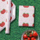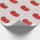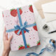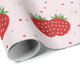 Um papel de mola de rosa claro com um padrão de morango e bolinhas. Uma boa ideia para um pacote de presentes para uma criança ou um amante de frutas doces!