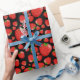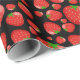 Papel de embrulho novinho de amoras amoras de diferentes tamanhos espalhadas aleatoriamente num fundo preto. Enrole o presente perfeito neste delicioso jornal.