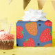Design de fruta, de cor branca e engraçada, morangos sobre fundo azul
