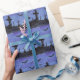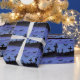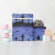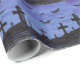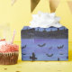 Uma pequena paisagem aquosa de morcegos em voo sobre um cemitério à noite enfeita esse papel de embrulho de Halloween assustador.