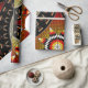 Desenhado pelo artista Lakota Melvin War Eagle - Para os Lakota, as estrelas eram consideradas muito misteriosas e, ao mesmo tempo, muito sagradas (wakan). Acreditava-se que nossos parentes eram as estrelas acima e eles eram vistos como vivendo em ordem e estrutura de excelente. Tão forte era essa crença, de que os Lakota vivendo na terra mimetizariam seus parentes, movendo o campo onde eles eram mostrados pelas constelações. Certas cerimônias foram seguidas ao longo desse caminho, que seguiu um círculo distinto ao redor de sites como Colinas Negras ao Botão Pedra, e completando o círculo no Butte Urso, onde vive o Mistério Excelente. Este design homenageia as estrelas (nossos ancestrais) e o caminho sagrado (wakan) que foi tomado por todos os Lakota durante o acampamento de inverno; a personificação do círculo sagrado.
