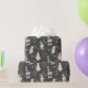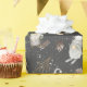 Moso de Natal bonito e gnomos esquiando sobre fundo de cinza escura com cobertura de floco de neve. A cor de fundo pode ser alterada.