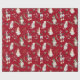 Moso de Natal bonito e gnomos esquiando em fundo vermelho com cobertura de floco de neve. A cor de fundo pode ser alterada.