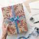 Papel De Presente Motivos de Folhas Vermelhas e Roxas Vivas em Bege