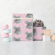 Rato de cinza giro com efeito de aquarela em bolinhas brancas e fundo rosa.