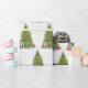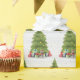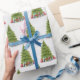 Um rato giro segurando um Enfeites de natal por uma árvore de férias com presentes.