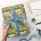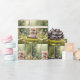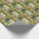 Um rato giro vestindo uma coroa de flores e um vestido fica em um balanço cercado por flores florescentes