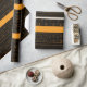 Os padrões modernos de pano da lama de Saytoons vêm em diversas cores não tradicionais. Este papel de envolvimento é preto e bege com as listras modeladas amarelos alaranjado