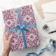 Esta mandala branca senta-se sobre um fundo vermelho-violeta escuro. A cor é profunda e sofisticada. Parte da Coleção Bardh Mandala.