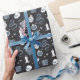 O papel de embrulho chico "Spooky" apresenta um padrão de cobras, cristais místicos, poções, espelhos, velas, velas, crânios, cartões de tarô e poções sobre fundo de carvão.