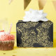 Na moda preto e dourado plástico de presente de peixe Koi. Os peixes Black Koi empunharam sobre um fundo de ouro intricadamente padronizado.