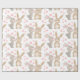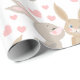 Coelhos bonitos se beijando. O fundo é branco com um padrão de corações cor-de-rosa
