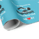 Uma prenda especial para um nadador afiado será ainda mais especial com este papel azul brilhante de embrulho, projetado especialmente para nadadores. O design usa o texto inspiracional "Quando os seus pulmões estão a rebentar e as suas pernas não conseguem natação com o SEU CORAÇÃO", em branco com um coração vermelho. Ao fundo há o pictograma de um nadador.