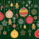 Enfeites de natal desenhados à mão sobre fundo verde