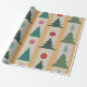 Este papel de embrulho tem uma design moderna do século médio de árvores de Natal e ornamentos pendurados numa garagem com fundo de ouro e prata.