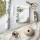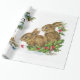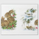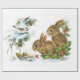 Coelhos de ilustração venenosos na neve com cones de sopa, pinheiro e pinheiro, e um pássaro.
