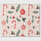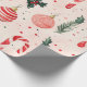 Um padrão de natais vintages muito fofo aprecia este rolo de papel de embrulho de férias. O design tem uma vibração retrô divertida com canas doces vermelhas e brancas e ornamentos brancos e vermelhos em fundo de rosa claro. São apresentados juntamente com galhos de pinheiro sazonais verdes vivos e sagrados com bagas vermelhas.