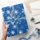 O papel de embrulho de Natal com floco de neve azul é uma forma excelente de mostrar seu presente neste feriado.