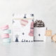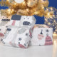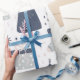 Vocês adorariam esta árvore de Natal azul, sino rosa, cinza e estocagem azul, ornamentos cor-de-rosa, presentes de cinza, flocos de neve azuis e texto dizendo HoHo!