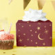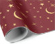 Um design celestial de lua e estrelas contra um fundo vermelho profundo festivo, um papel de presente ideal para a temporada de Natal.