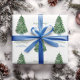Árvore Nórdica de Natal de Spruce em uma plantação de Chinoiserie azul e branca. Esses elementos foram pintados pela sua pessoa realmente antes de serem dispostos em um padrão repetitivo com a capacidade de adicionar texto personalizado.